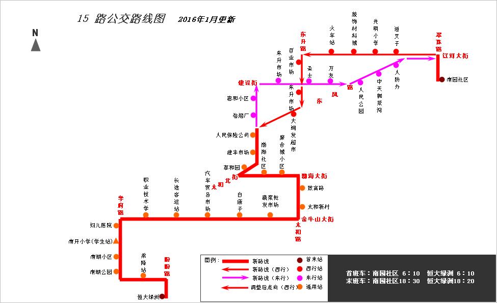 根據(jù)公交線路覆蓋區(qū)域要求,結(jié)合承包車主提出申請,為方便青花大街與盼盼路交匯處以南附近小區(qū)居民乘坐公交出行,經(jīng)公司研究,從2016年1月26日起,對(duì)公交15路線路走向進(jìn)行局部調(diào)整,具體情況如下: