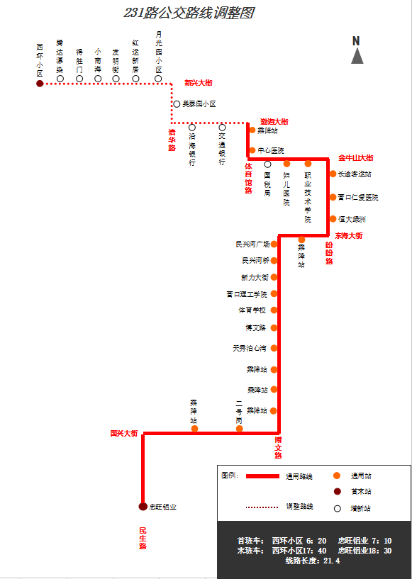 “西環(huán)小區(qū)”—新興大街—清華路—渤海大街—體育館路—金牛山大街—盼盼路—東海大街—博文路—國興大街—“忠旺鋁業(yè)”。