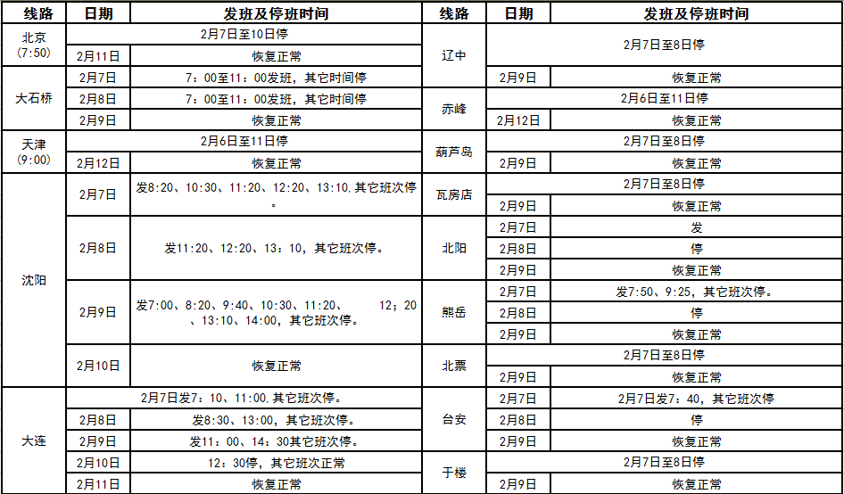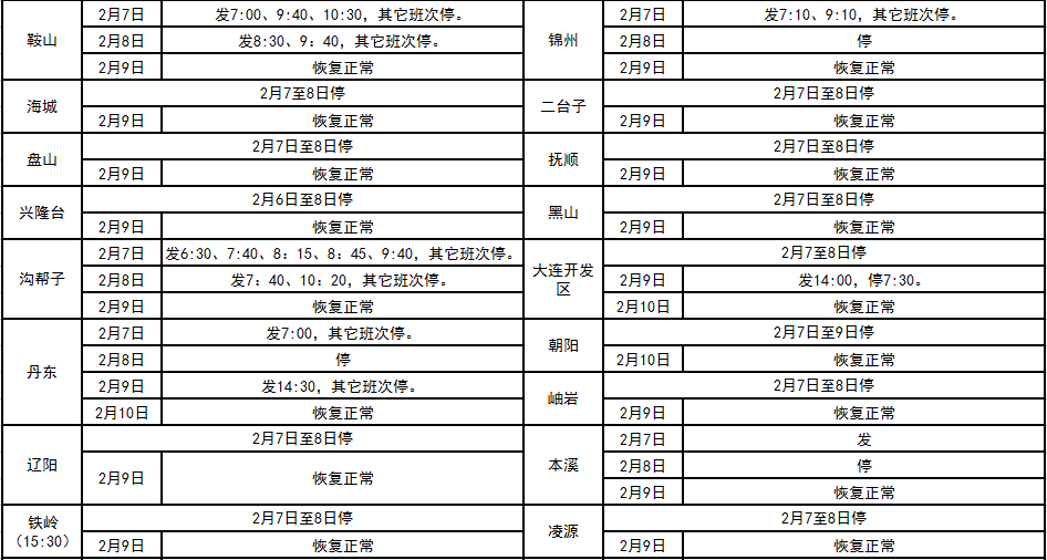 2016年春節(jié)假期班次發(fā)車時(shí)間